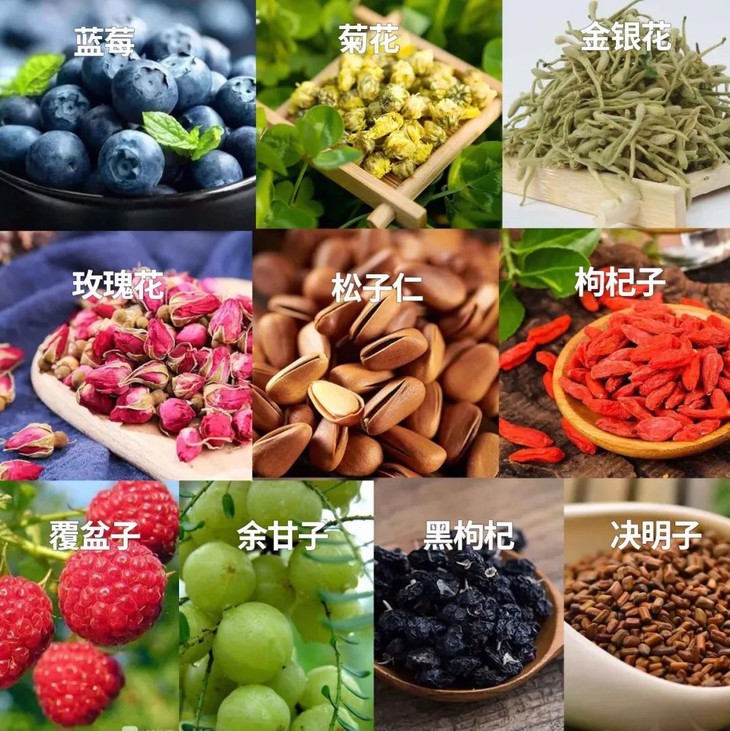 决明子、蓝莓、黑枸杞、红枸杞这几种清肝明目的食材,提高视力,预防角膜焱和视网膜病变,润眼护眼;