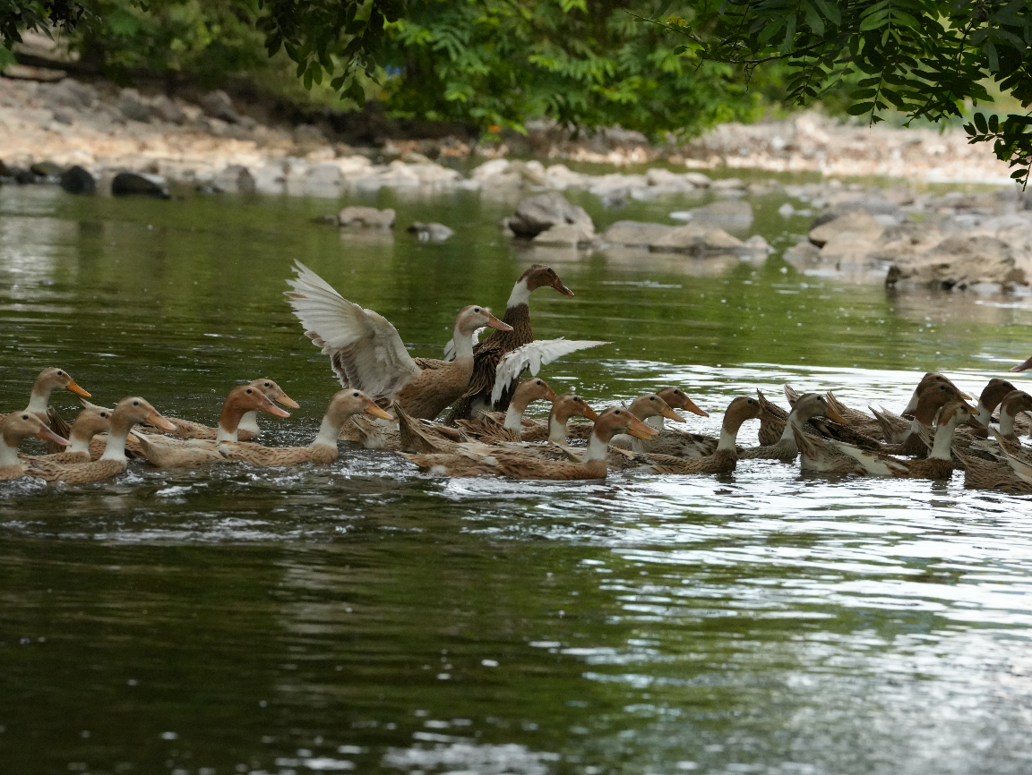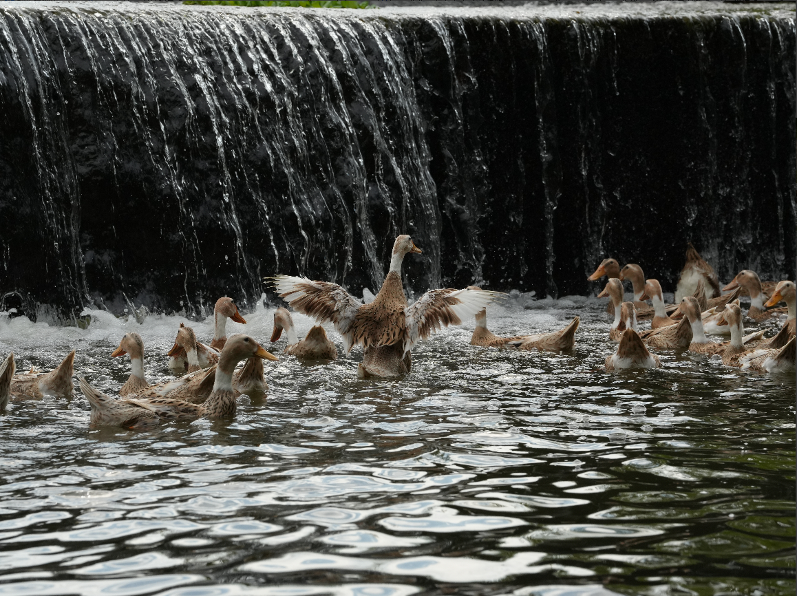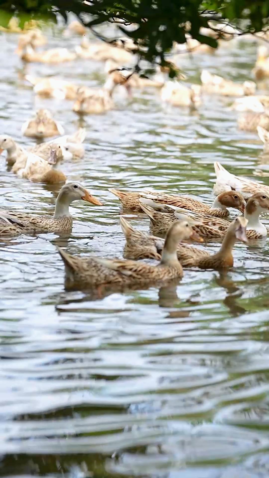 鸭子们早上六点就嘎嘎叫着下水,个个都是运动健将!