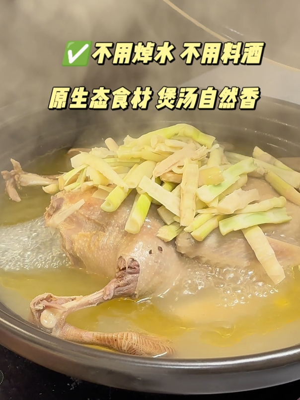 煲汤只需加3片姜,旺火煮沸后转文火煮2小时,