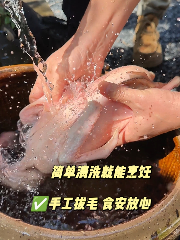 溪水放养的年份老鸭,现抓现杀,手工拔毛