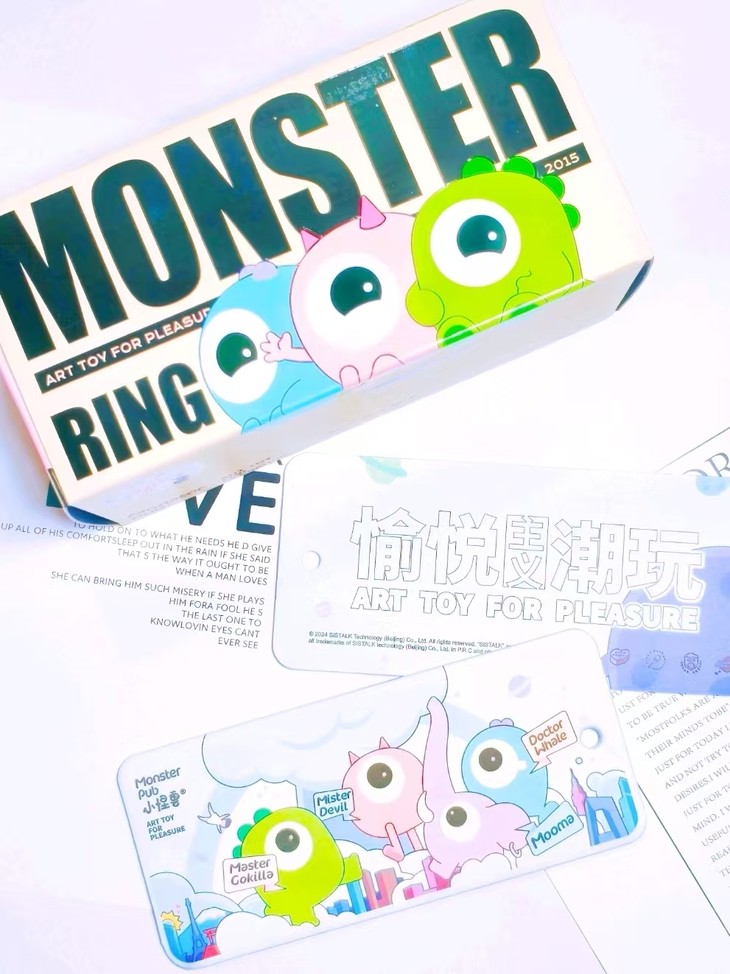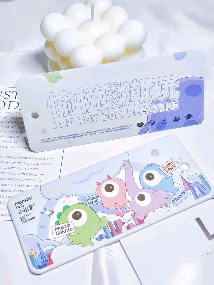 迫不及待地拿到手,开启外层真空包装卡片封面上,可爱的四小只活灵活现,它们像是从童话世界里蹦跶而出的小精灵,每一个细微的表情和动作都被刻画得栩栩如生,让人忍俊不禁。目光流转到背面,“愉悦潮玩主义” 这几个字以一种极具个性活力的姿态,将怪兽派对自由奔放、妙趣横生的灵魂展现得一览无余。