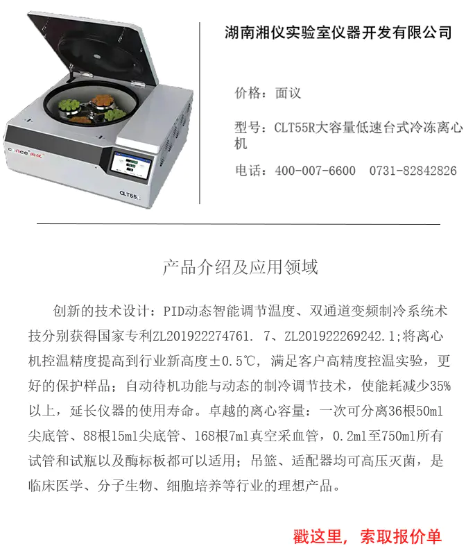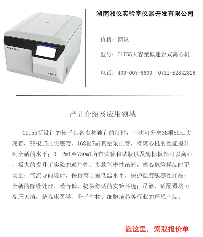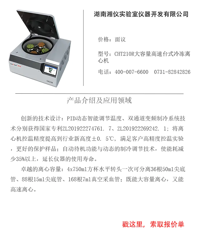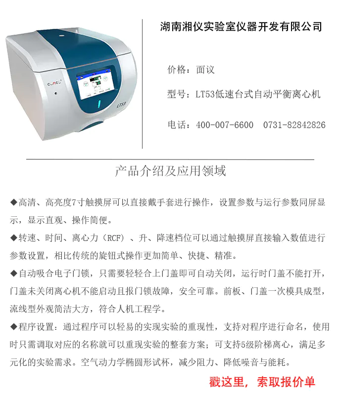 湖南湘仪实验室仪器开发有限公司是以生产制造离心机及实验室仪器的高新技术企业,专业生产离心机已有五十多年,我国超高速冷冻离心机(55000r/min)和高速冷冻离心机(20000r/min)都诞生于湘仪。