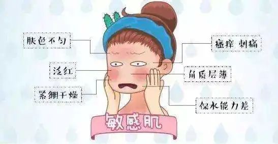 敏感肌,要避免使用具有刺激性的高浓度功效类产品,以及含有酒精等刺激性溶剂的产品,不要去角质,不可做按摩和热喷。