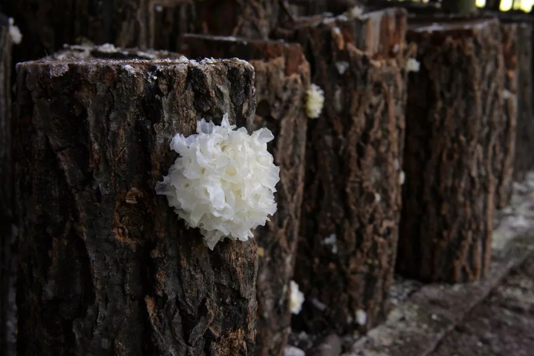 接种银耳的木头也是有严格要求,必须是在山上生长7~8年的青冈木上,经人力从深山运回,作为培养银耳的天然成长基。