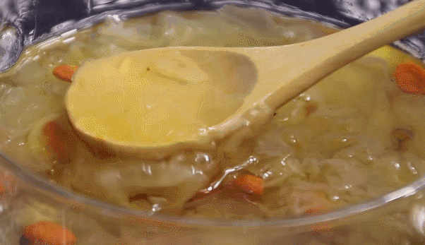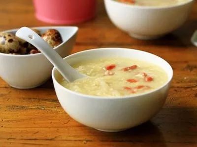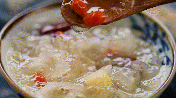 做法:干银耳提前用水泡发,清洗干净,撕成小朵;干枸杞洗净,备用;小米清水漂洗,和处理好的银耳一起放入电饭锅内炖煮,煮至小米开花,汤汁粘稠,关火;放入枸杞、冰糖,利用汤水的热量泡发枸杞,激发出它的营养;微热后,即可食用。