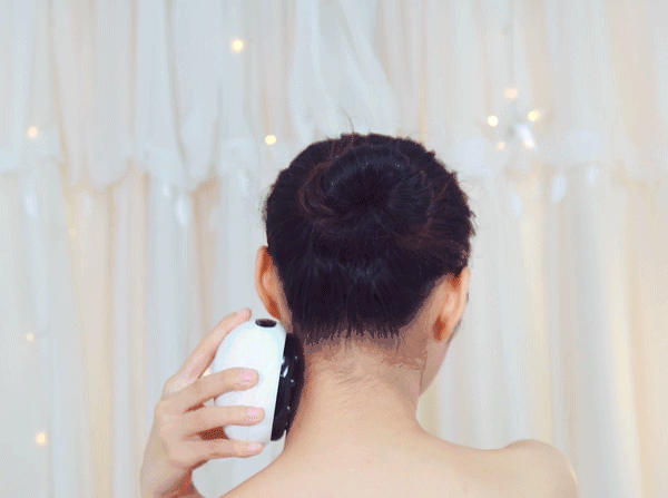 碰巧上个月,肩颈酸痛的厉害,旁边的同事就给我试用了这款智能刮痧仪。