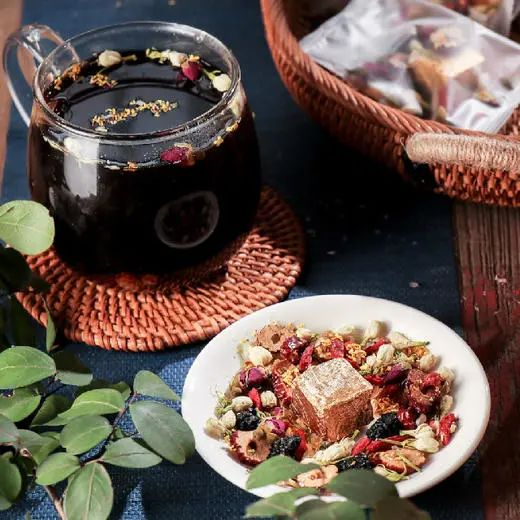 用玫瑰、茉莉、桂花,加枸杞、桑葚、大枣,愿意吃糖的再加一块黑糖或者红糖,共同组成三花三果茶,在这个春天,连续喝上七天,会对全身气血有很好的调补和通畅作用。