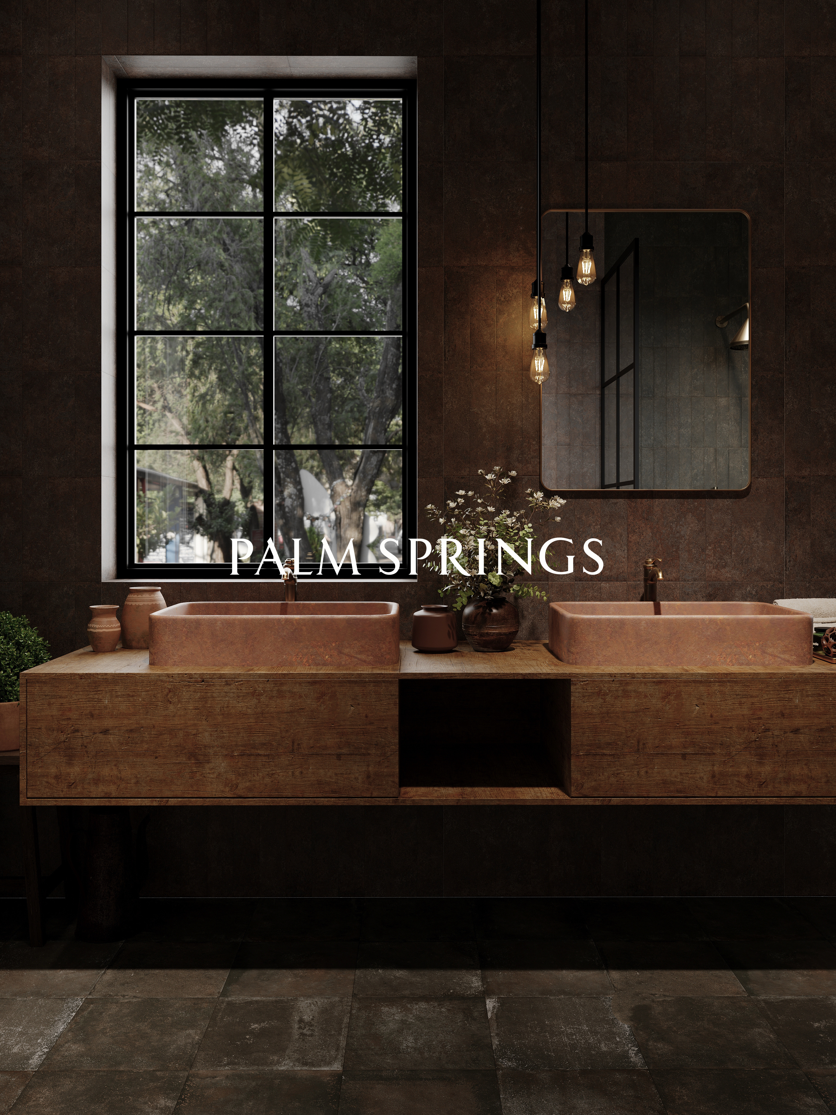 踏入这个空间的瞬间就被狠狠拿捏了!当深灰调哑光瓷砖以「不规则拼贴」铺满地面,搭配微水泥肌理的墙面,仿佛把火山岩的原始质感与时光沉淀的温润感揉进了浴室——原来暗黑系也能这么有呼吸感!