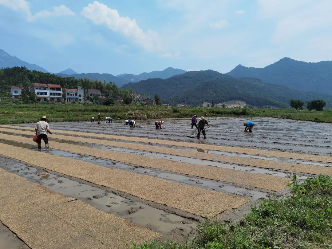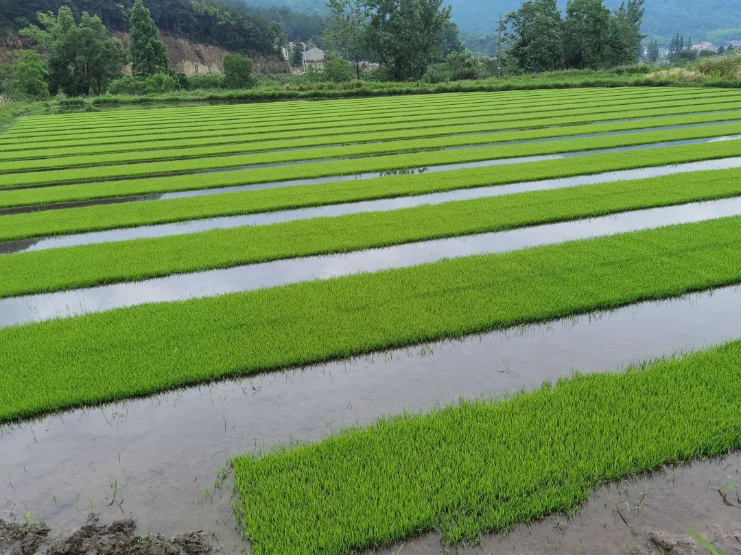 ↑黑龙江牡丹江基地 插下秧苗的火山岩水稻田