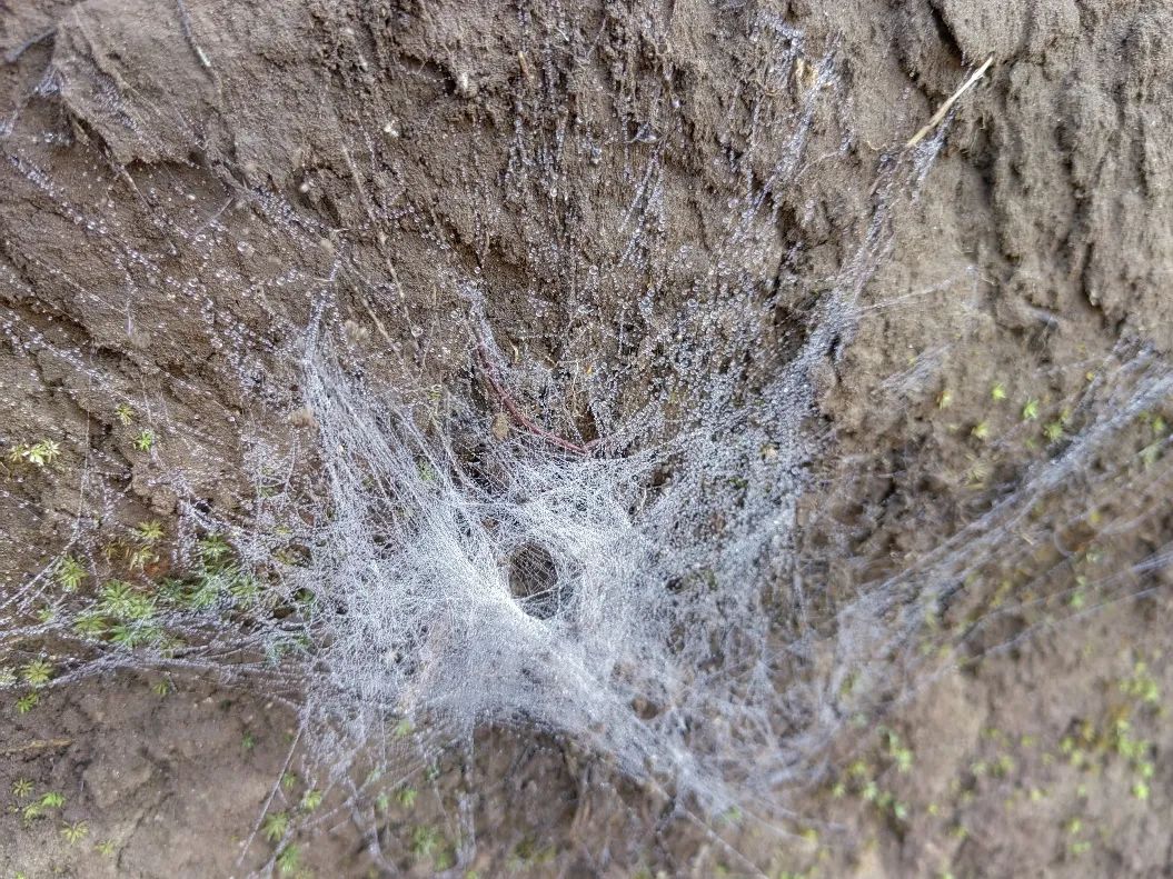 ↑ 云南基地 挂满露滴的3D蜘蛛网