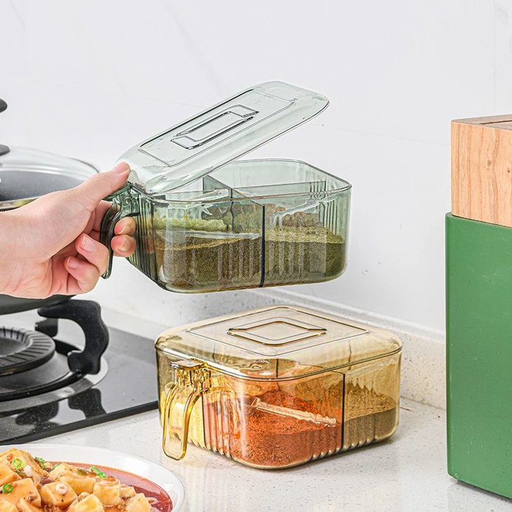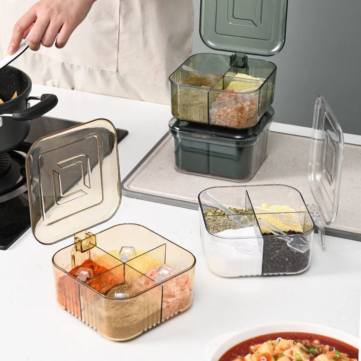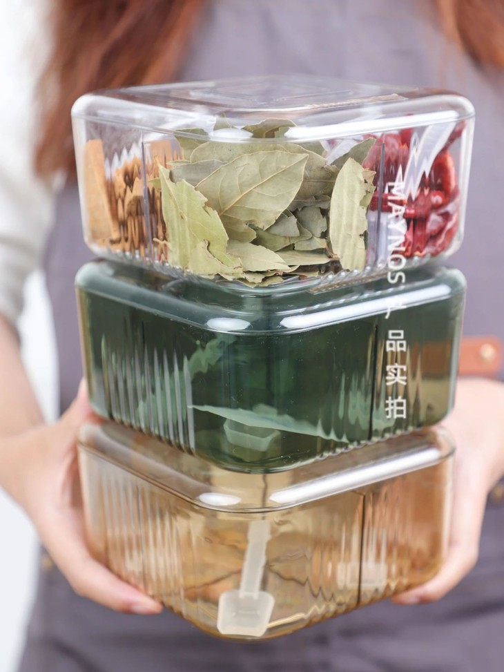 发现他们家用的是四盒一的调味盒!