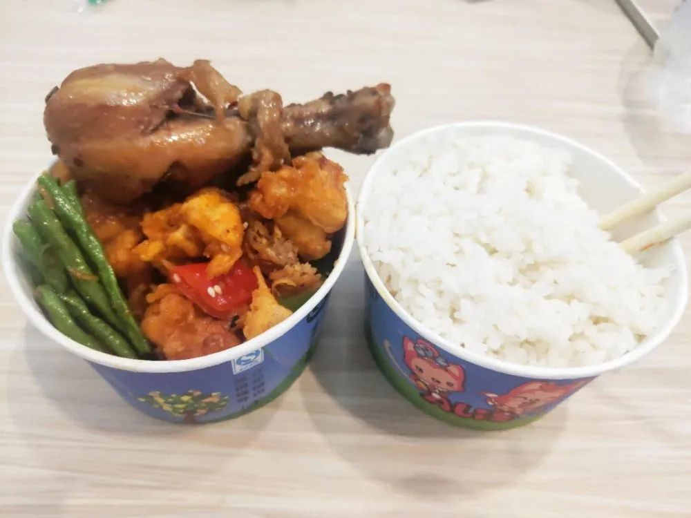 认真地在食堂里