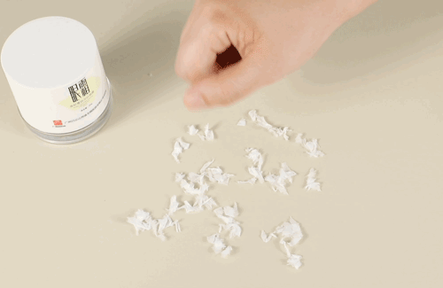 用涂抹了眼霜的手背去压纸屑,手背清爽不黏