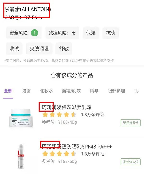尿囊素还具有消炎、抗敏的作用,特别适合敏感肌使用,药妆界赫赫有名的珂润、薇诺娜就是以它为核心消炎成分。
