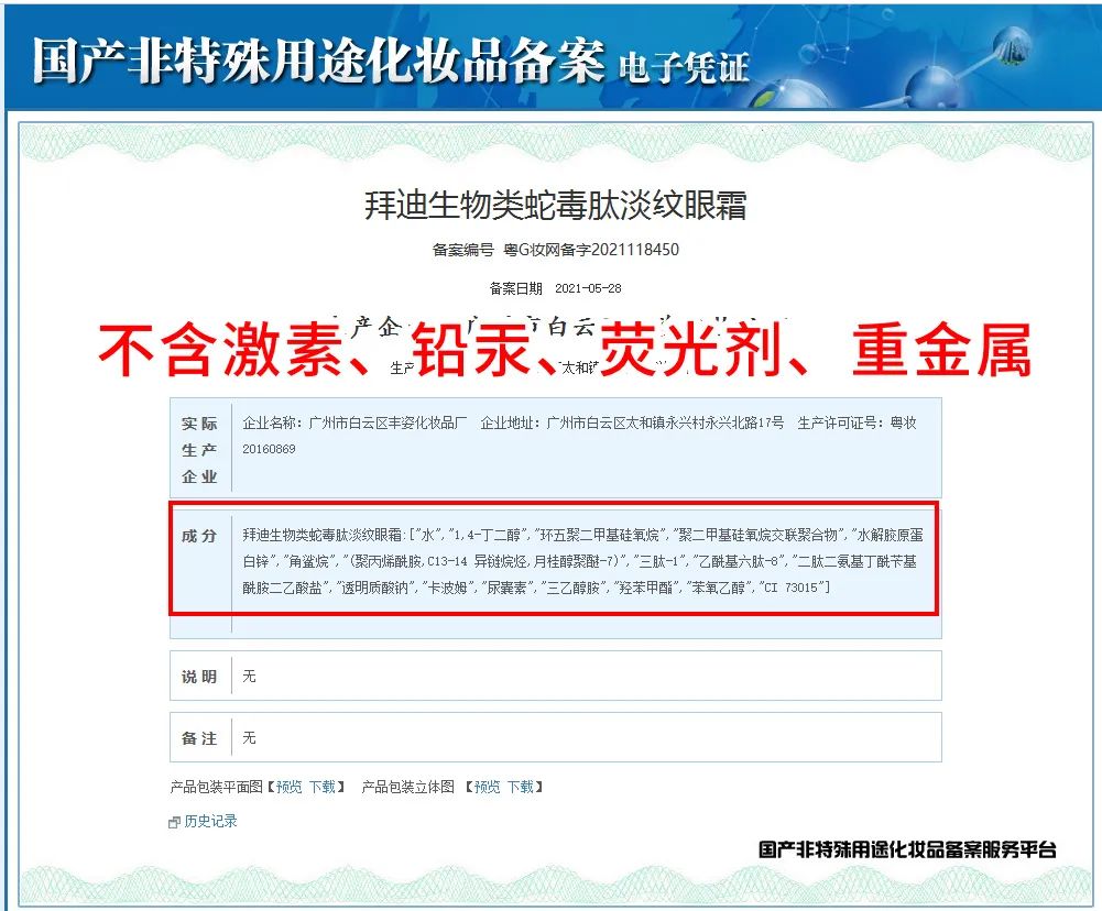 为了达到最好的抗皱效果,白云山蛇毒眼霜里添加4%的类蛇毒肽,这个添加量是安全范围内去皱最好的浓度。