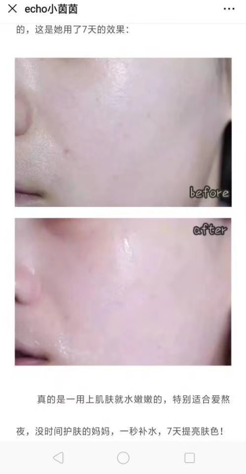 抚平干纹 细纹、美白提亮肤色、细腻皮肤、淡化斑点、补水保湿