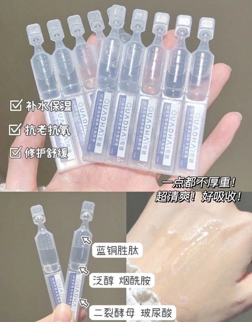 🔆主打成分:透明质酸、烟酰胺、二裂酵母、蓝铜胜肽。
