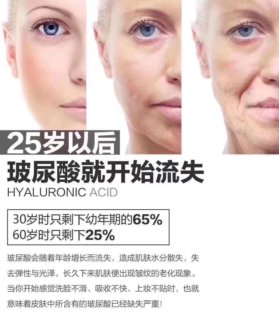 其实玻尿酸是咱们皮肤里就有的成分,25岁开始就加速的流失了,皮肤开始失去弹性与光泽 出现细纹 松弛 慢慢的衰老等等