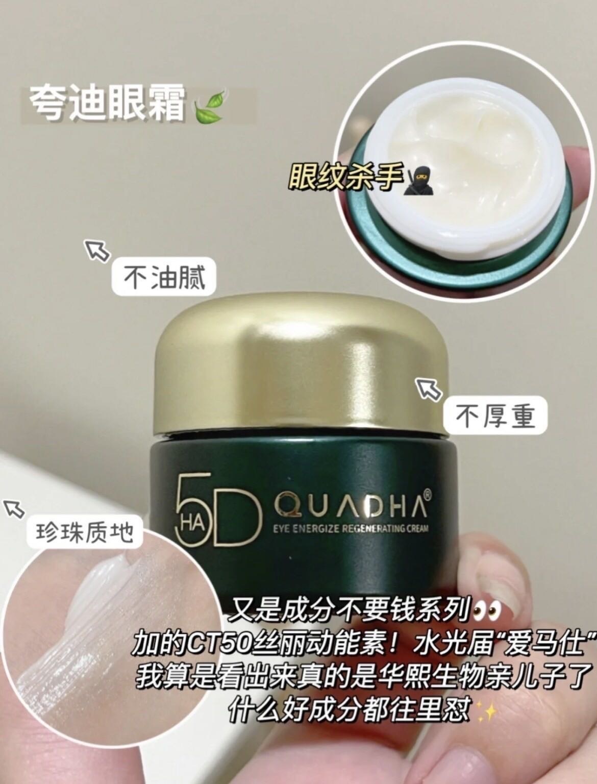 这款是夸迪家的新品眼霜,主打抗老紧致,眼下有干纹/细纹,熬夜有黑眼圈的姐妹们,就用它!