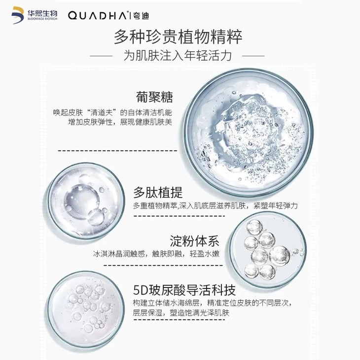 纯5D玻尿酸成分,从深层开始锁水,迅速补水,肌肤整日莹润饱满+超活玻尿酸分子——熙敏修,渗入肌底,源头修复受损及肤,高效的深层水光换肤!!