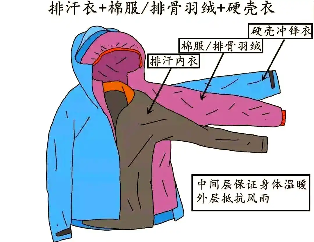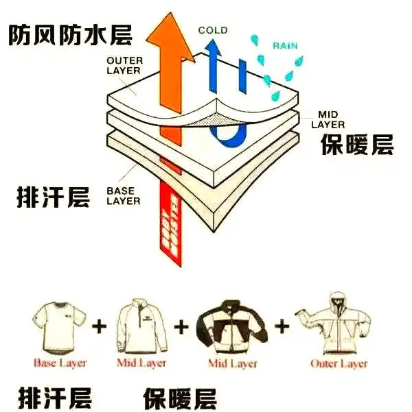 在户外着装方面,有一个被广泛遵循的原则,即“三层穿衣”准则。它建议将衣物分为内层、中层和外层,每层都有其特定的功能。