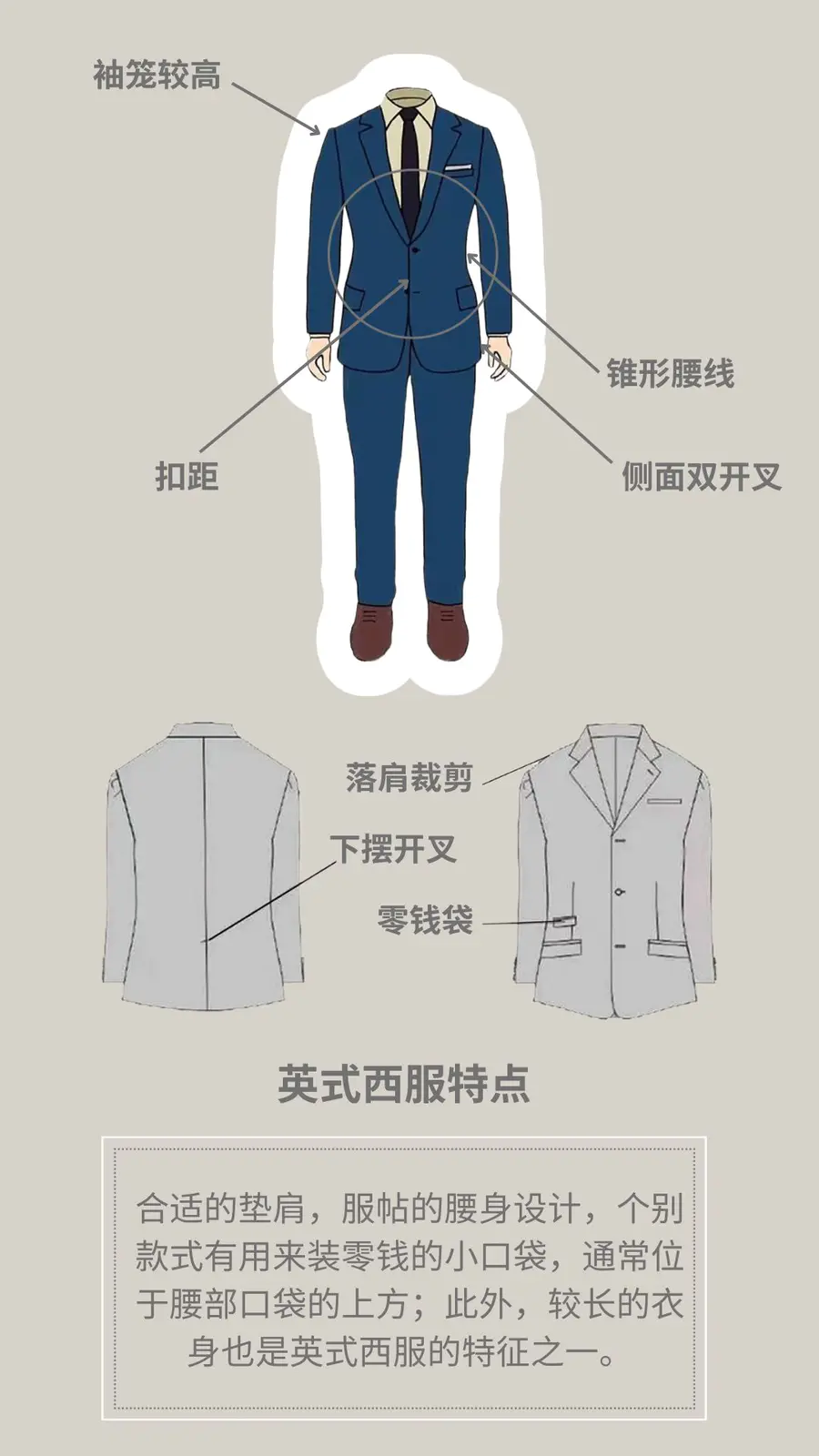 英式西服大多是单排扣的经典款式,