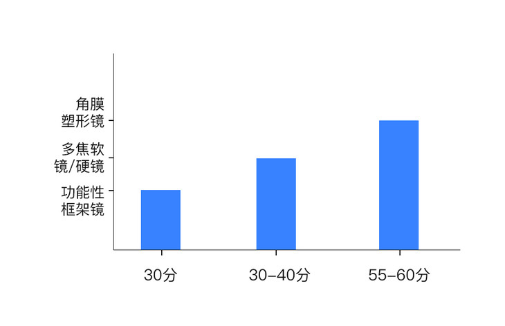 现在比较常用的雾视训练需要戴眼镜看远处半小时到一个小时,比较费时,儿童很难坚持,虽然是一种有效的防御手段,可执行性方面欠佳。有好的辅助器具推出之后,雾视法有望成为主力的防控手段。(如长期坚持,评分可达60分)