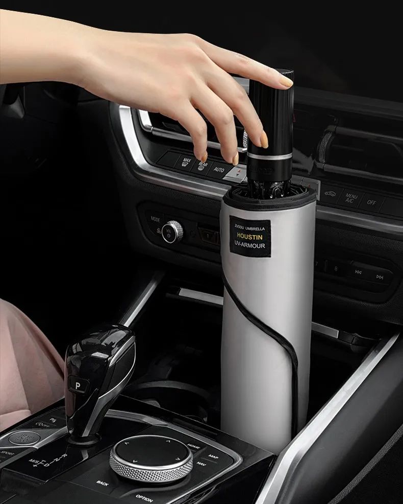 还可以折叠收纳,收起来比普通伞大不了多少,放在车里毫无压力~