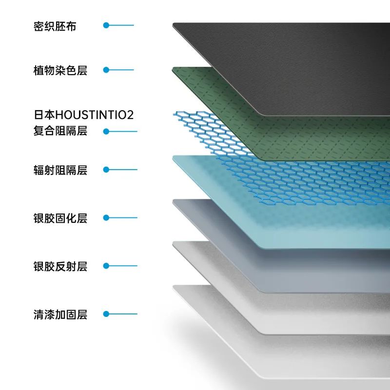 2.日本 HOUSTINTIO2 降温涂层,5 层超强防晒阻光材料,隔热出众。