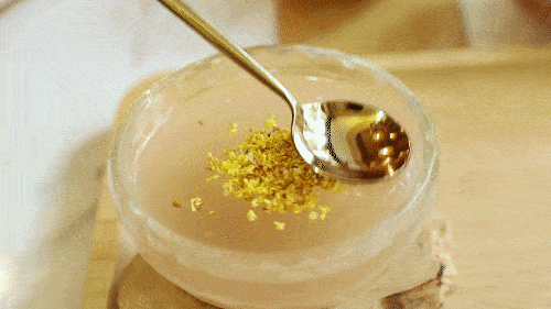 晶莹剔透的冻状点心里飘着淡淡的桂花香气,软滑Q弹,带有一股吴地江南特有的温柔小意。