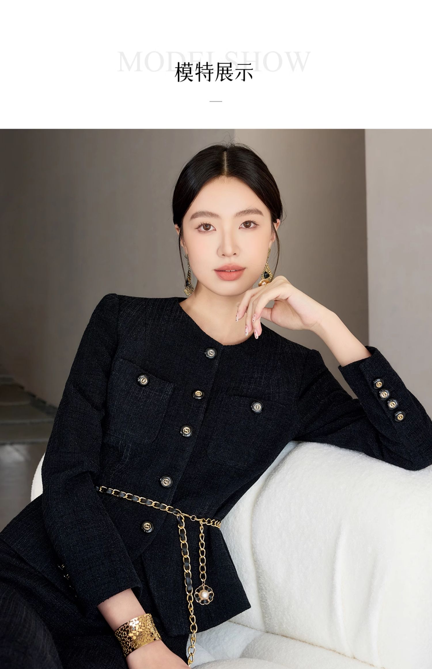 却用一排银扣锁住专业感;