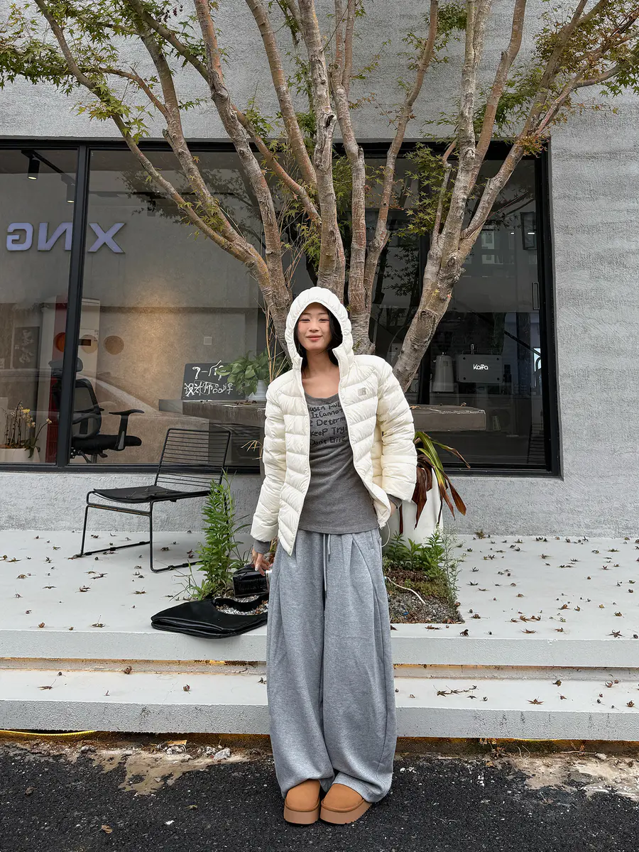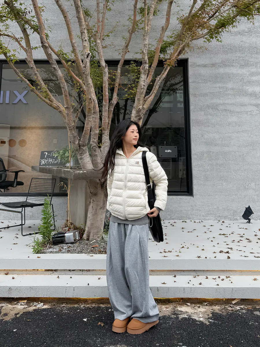 穿搭灵感|白色排骨羽绒服✖灰色休闲裤,懒人秒会的高级感穿搭