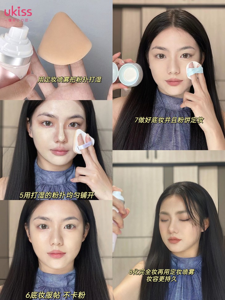 💕最后用定妆喷雾,一次喷全脸,成膜后脸部即刻哑光