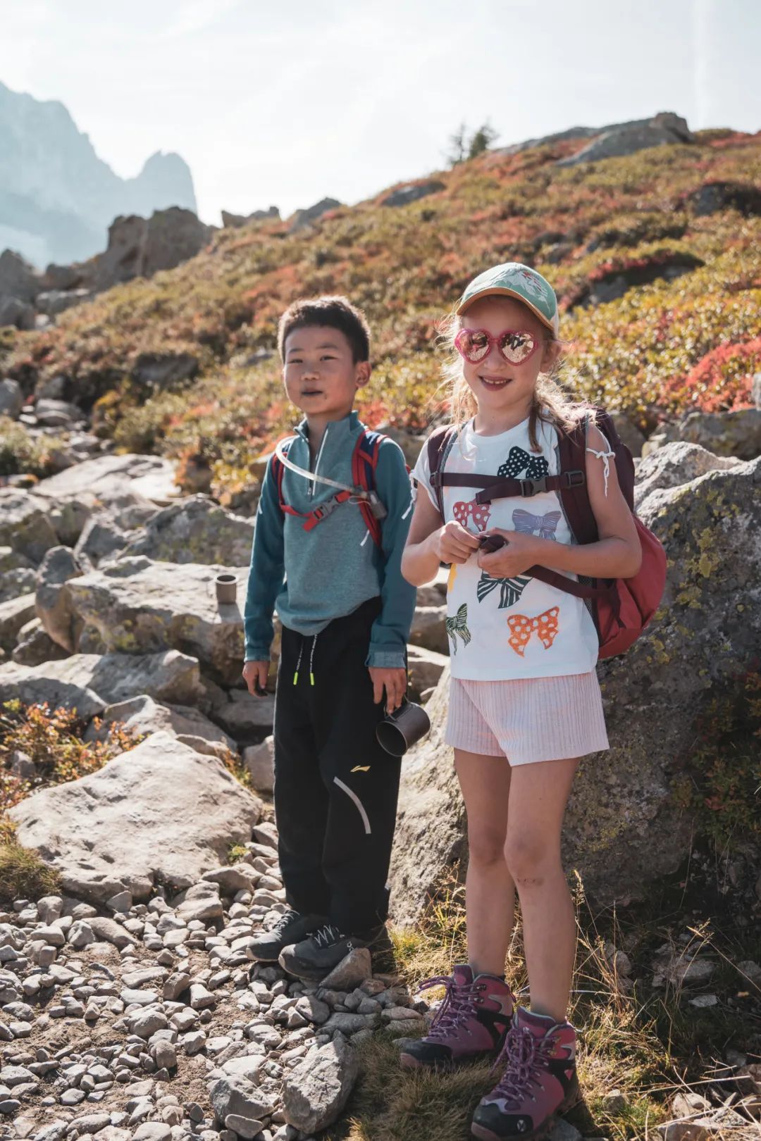 队里最小的8岁孩子 (左)与偶遇的小朋友合照©卡西