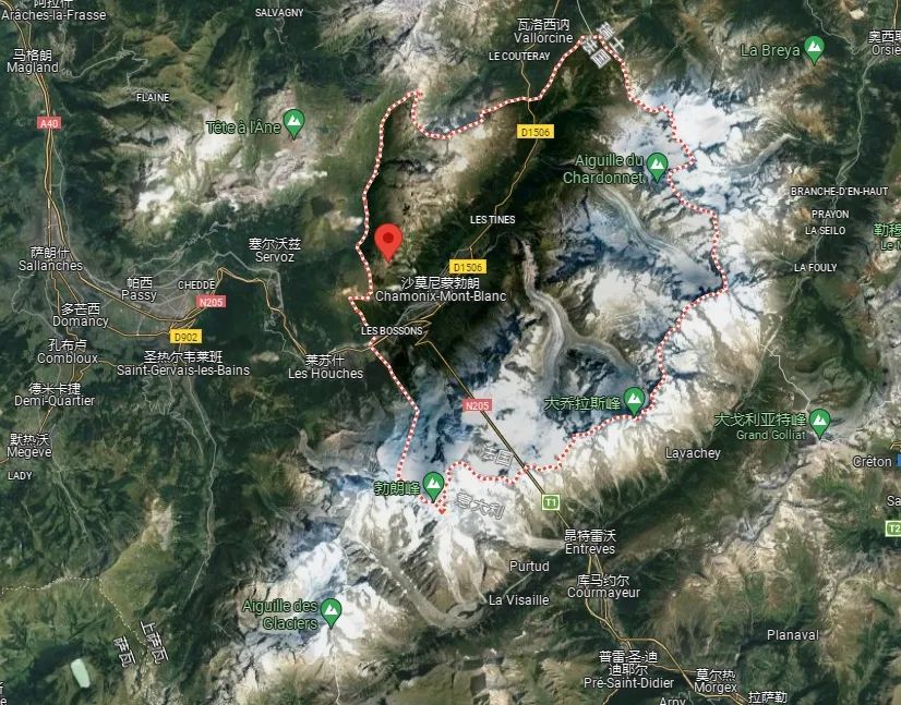下机后从日内瓦机场一路直奔霞慕尼,这个小镇在一片狭长的山谷之中,背靠阿尔卑斯山,直面勃朗峰,处于法国、瑞士、意大利三国的边界,以优越的地理位置、悠久的登山历史和浓郁的户外氛围闻名于户外界,是名副其实的“户外天堂”。