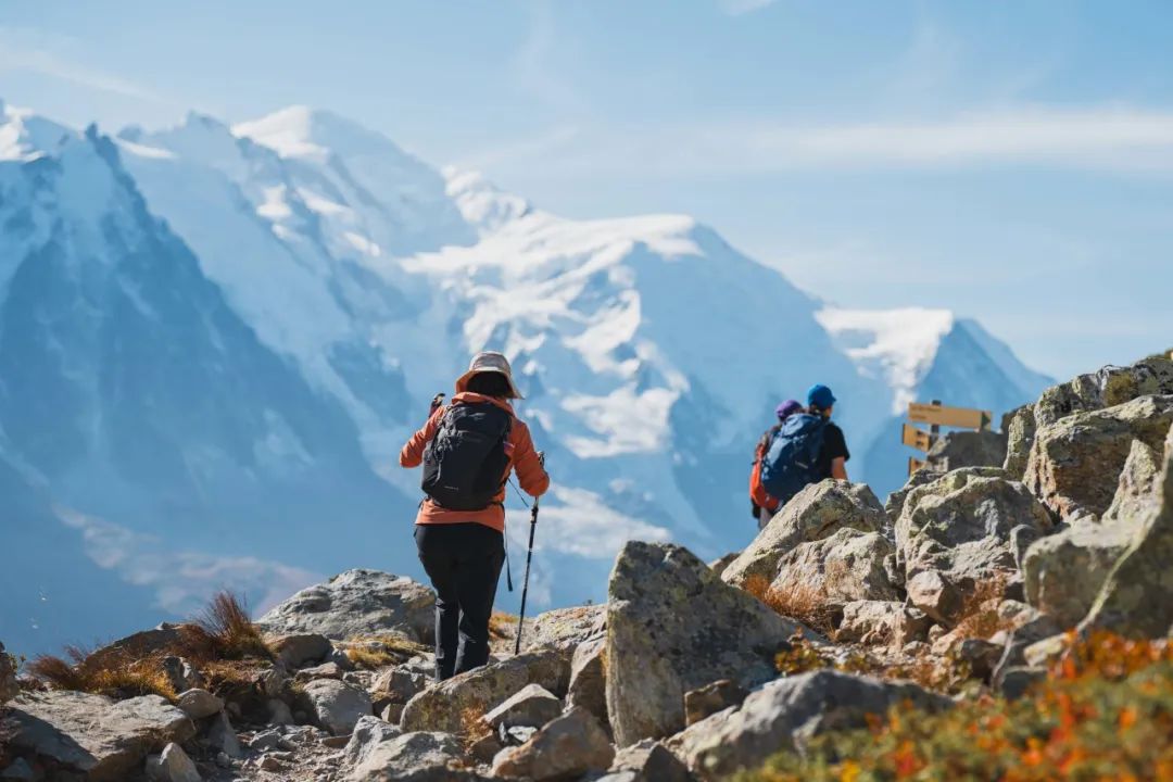 你会看见不同国籍、肤色的徒步者、骑行者、越野跑者们咬牙挥洒汗水,以一种昂扬的姿态享受高山,所有的问好、鼓励在错身交汇时都汇成一句简单的“bonjour”(法语你好)。