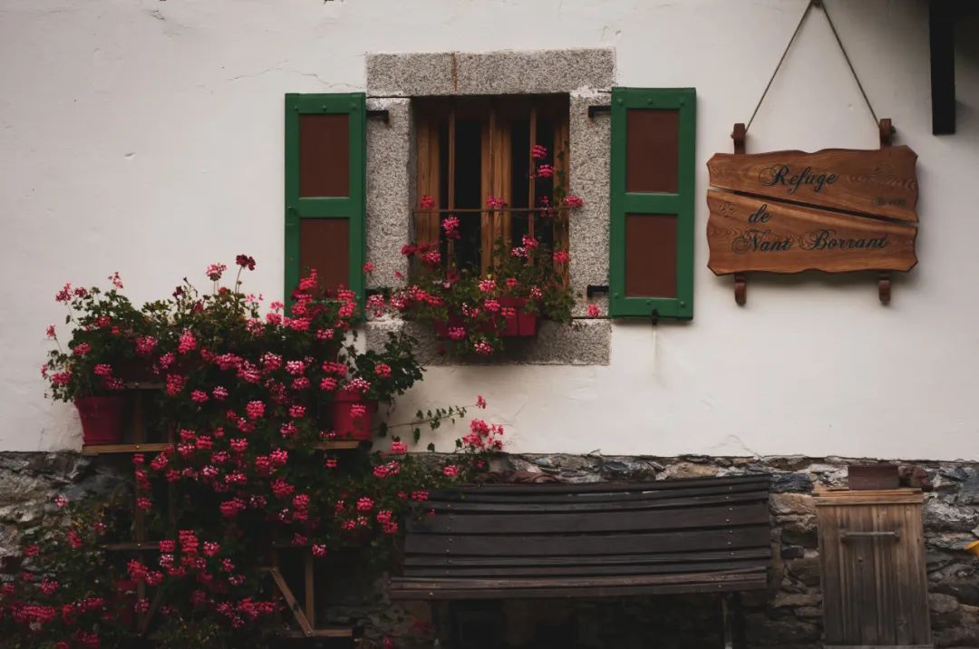 TMB从来不缺乏美,360°雪山全景环绕,冰川近在咫尺,黄绿的灌木丛沿途点缀,牛羊闲庭信步散放其间,山屋大门紧闭,但窗台上长满了热烈的鲜花,正在旁若无人的盛放。