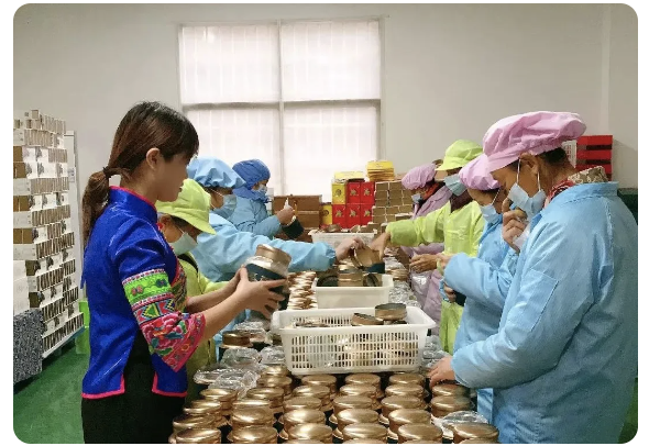 制好茶,功夫都在细节里。从采摘、选叶、揉捻、摊青、筛选、杀青、摊凉、发酵到提香烘焙、优选等每一个环节,蓉儿她都必须亲自制作、层层把关。最后再经过初选、精选、优选,优中选优,才能成为养生茶王一一蓉儿家莓茶!“莓茶从山野变成白如霜、久回甘的上好饮用养生茶,从采茶、选茶、杀青、炒茶、发酵、复干等制作工艺非常讲究。只有精挑细选,传统工艺制成的特级莓茶,才能满披白霜,口感上佳,醇香恒久”