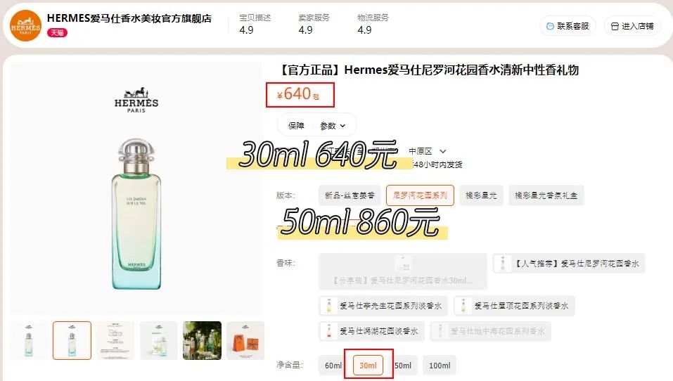 价格当然不菲,仅30ml都要640元,50ml要860元,对于很多打工人而言,纵使魂牵梦萦也只能默默加入购物车!
