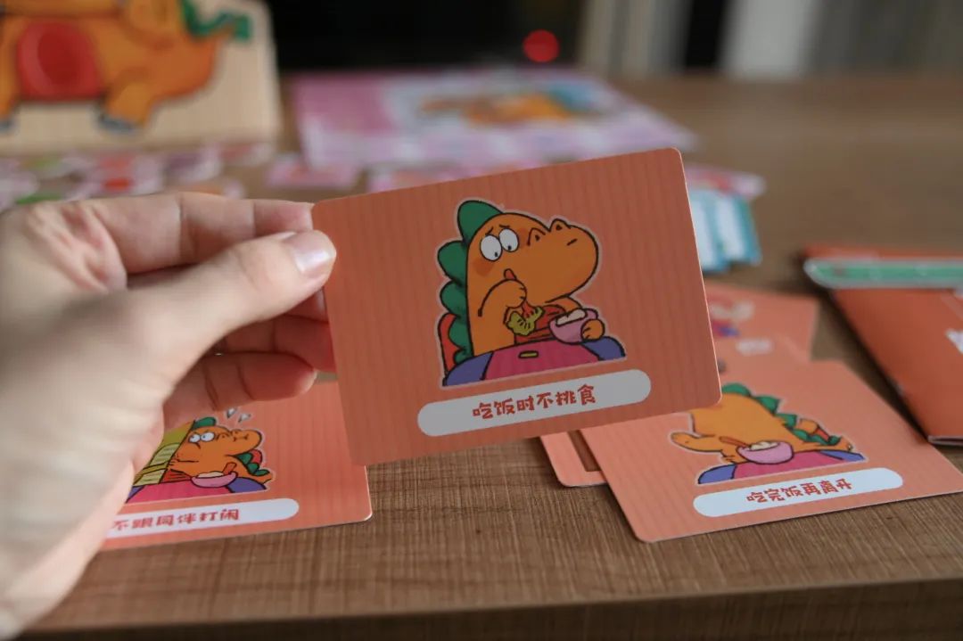 卡片上一脸抗拒的小恐龙,是不是像极了家里的小饭渣~