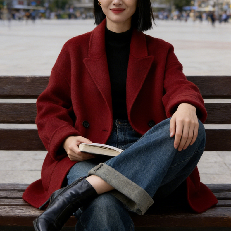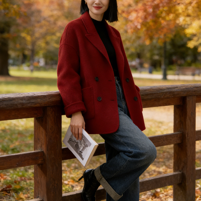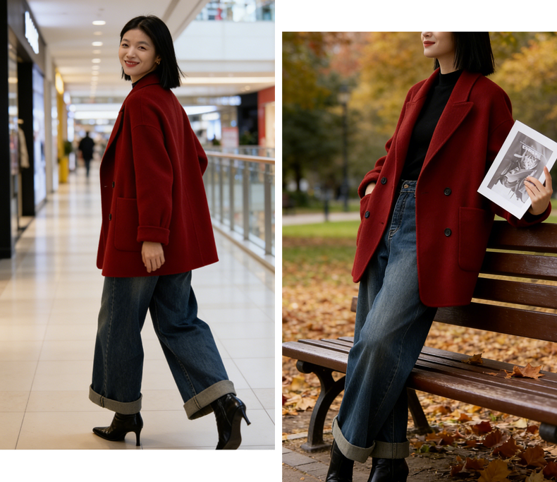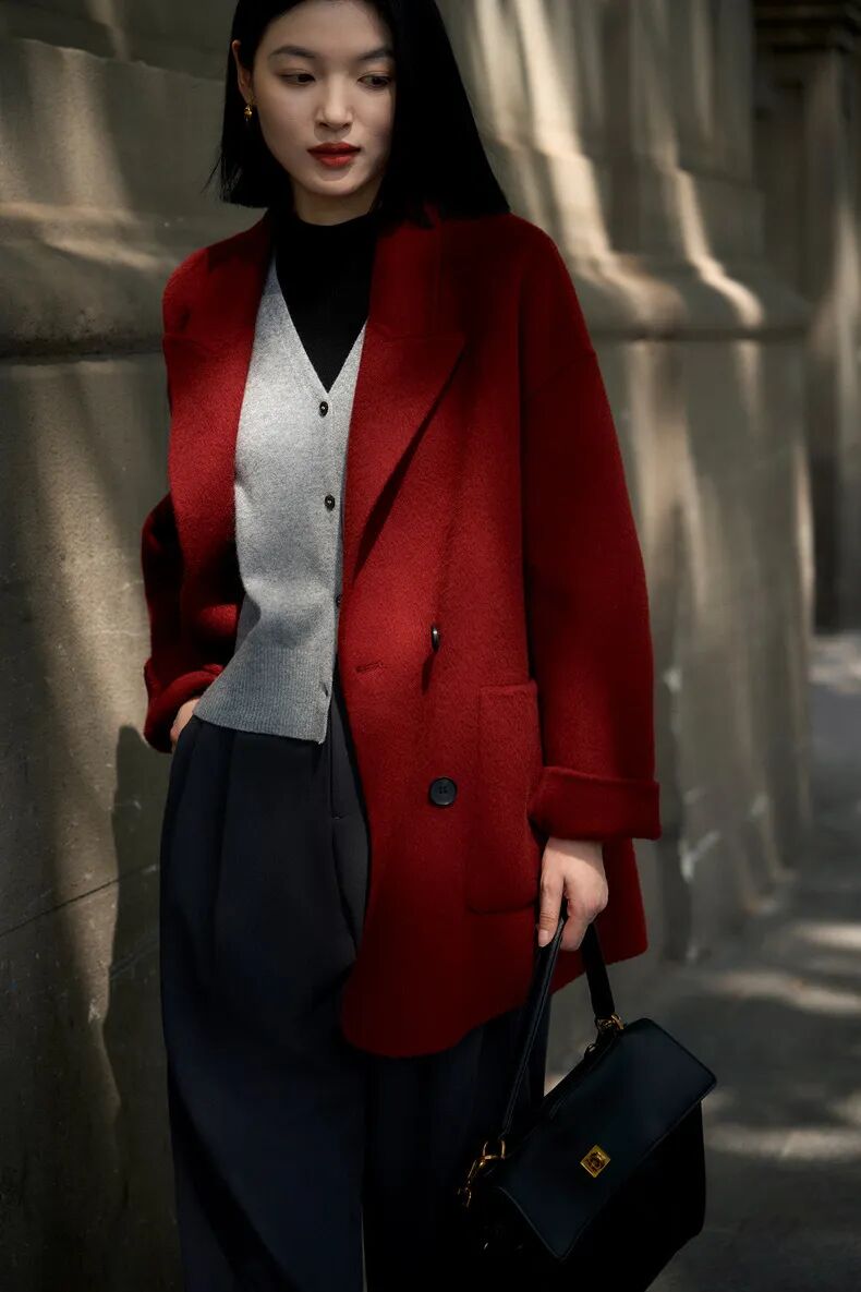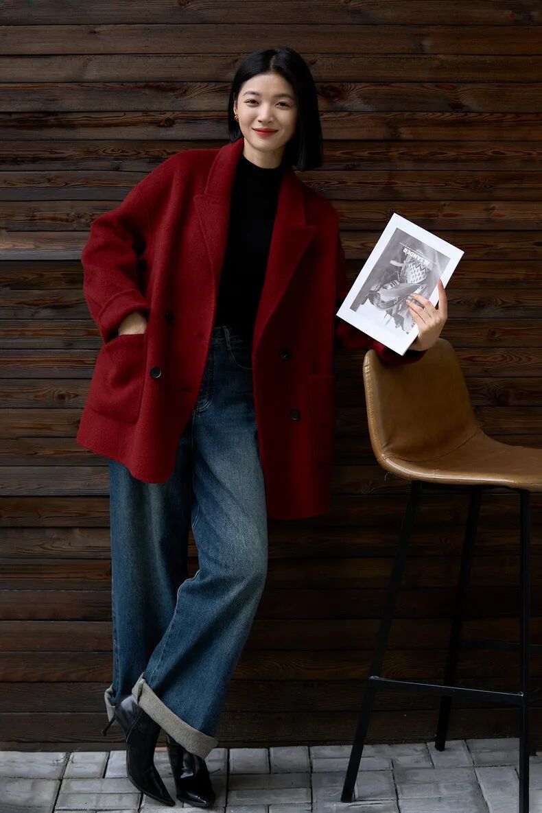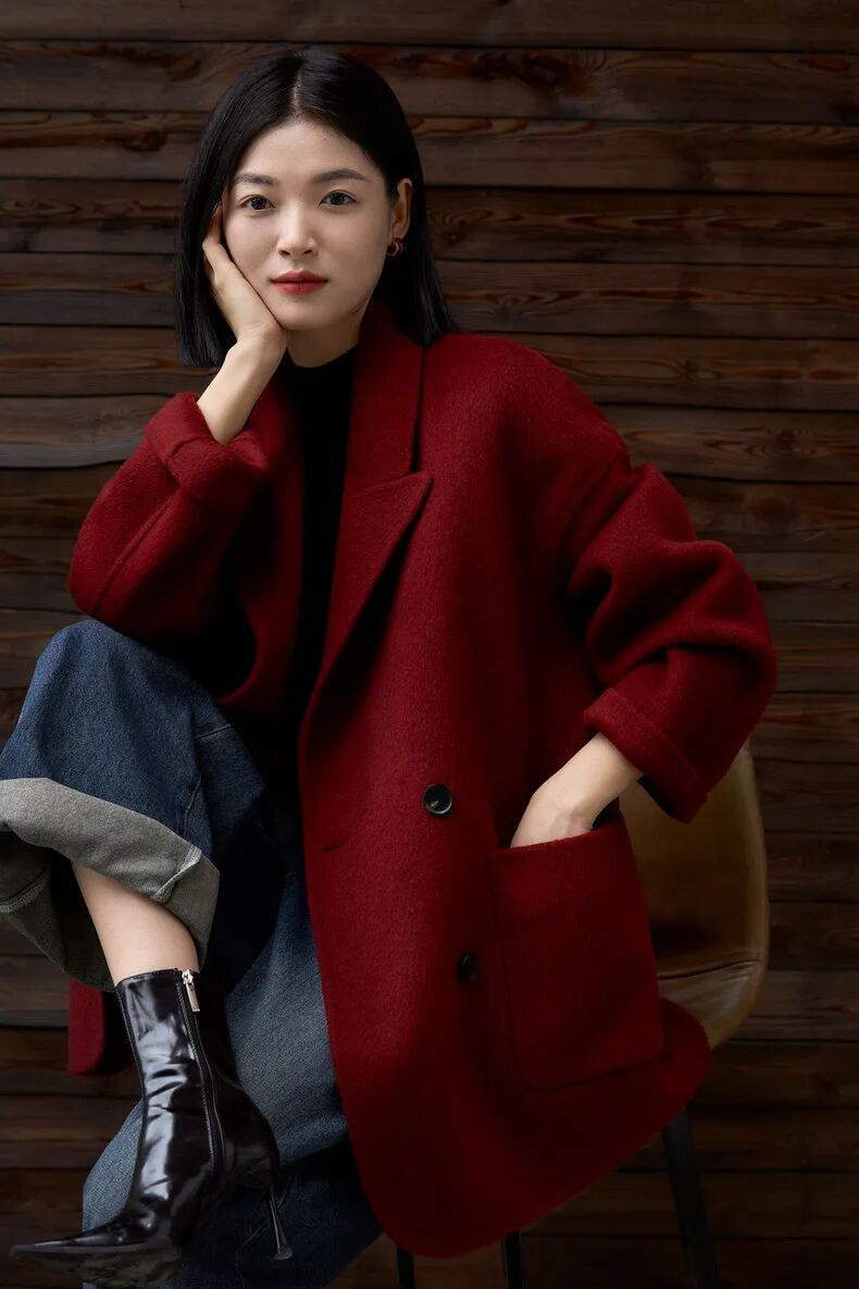 如果你是第一次买红色外套,我建议避开长大衣、风衣,以及羽绒服、皮衣。