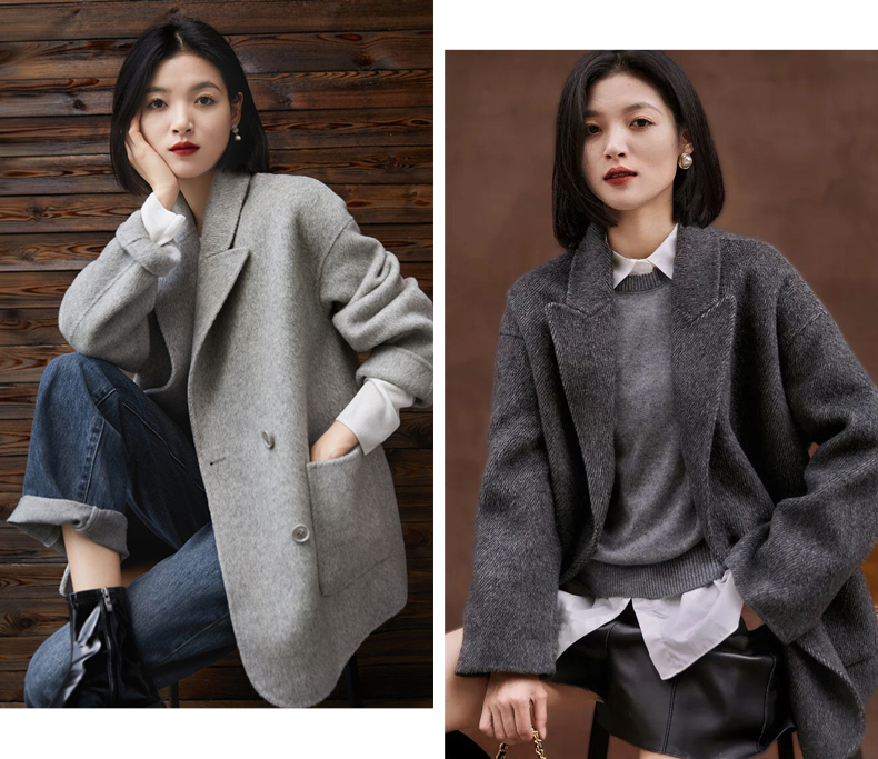 保留了毛呢流动感的同时,亦有一定的挺度和悬垂性,对衣型的表达更立体
