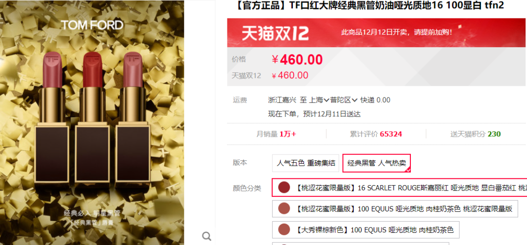 一支TF口红售价高达460元,还常年缺货,想买到热门的色号更是只能靠运气!