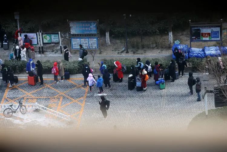 ▲1月19日10时52分,融汇社区,与1月18日公布无症状感染者同校的学生,在家长陪同下准备乘坐大巴前往集中隔离点。