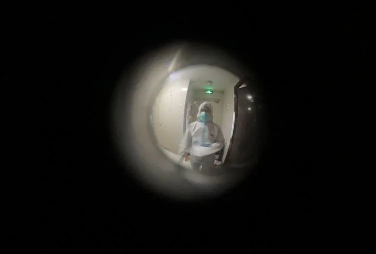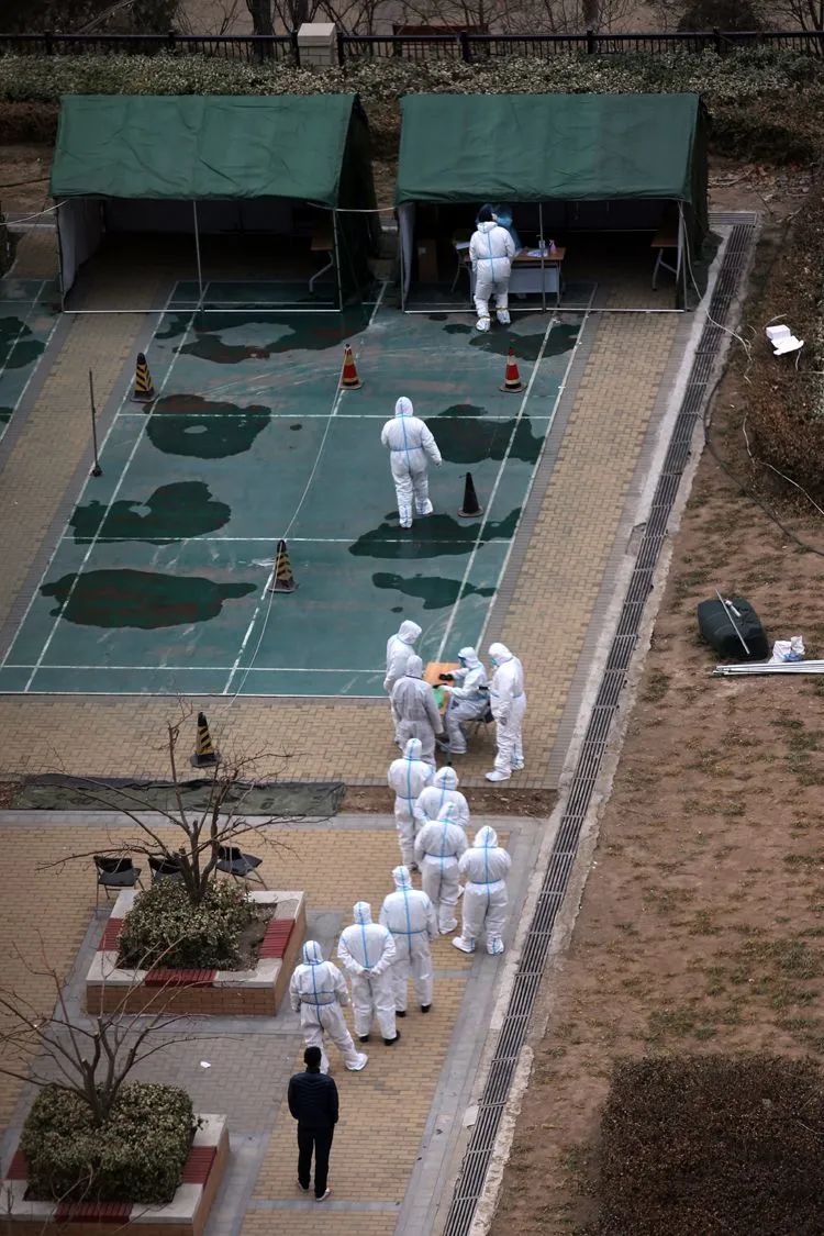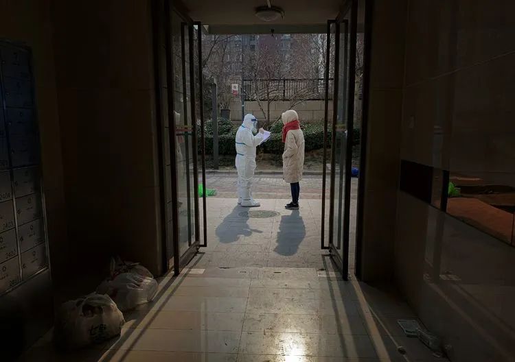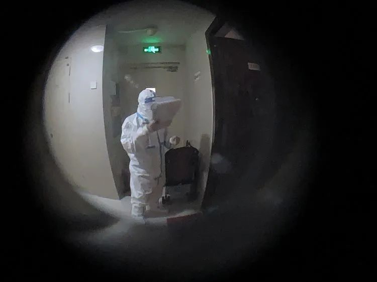 ▲1月18日3时47分,大兴区天宫院街道融汇社区,穿着防护服的工作人员挨家挨户开始“敲门行动”,核对居民是否已做过核酸检测,嘱咐居民除了核酸检测外不要下楼。
