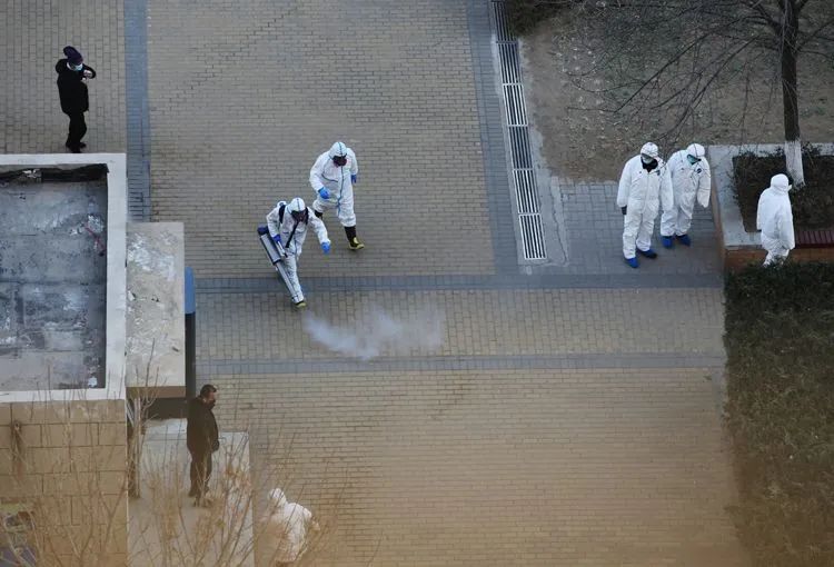 ▲1月18日15时37分,大兴区天宫院街道某小区,工作人员正在进行消杀工作。