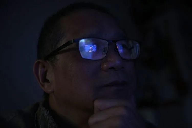 ▲1月20日下午,融汇社区,一位居民观看北京市新型冠状病毒肺炎疫情防控工作第215场新闻发布会。