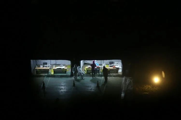 ▲1月17日23时23分,大兴区天宫院街道某小区,位于小区羽毛球场的临时核酸检测点灯火通明,工作人员寒夜中坚守岗位,等候零星前来做核酸检测的居民。
