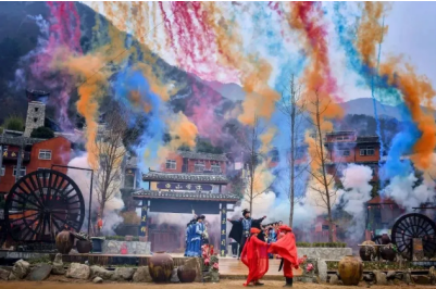 14:30点左右可观看大型实景剧《风云土司寨》,一场保卫爱情和家园的表演震撼上演,让观众拍手叫绝!(免费)
