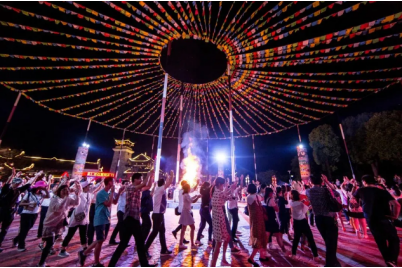 沿着锦里风情街往上走就到达了【篝火广场】,每到周六夜晚,这里会举行盛大的篝火晚会,有土家阿哥阿妹带领大家唱歌跳舞。